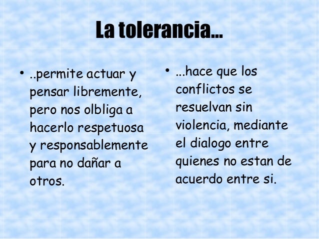 La tolerancia es una actitud de la persona que respeta las opiniones, ideas o actitudes de las demás personas aunque no coincidan con las propias.